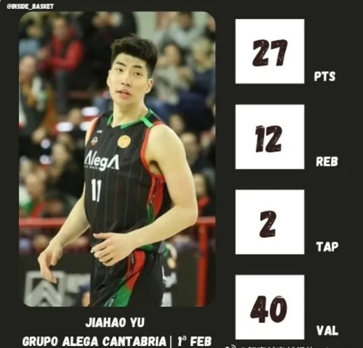 留洋代表作!余嘉豪11中9獨(dú)攬27分12板2助2帽1斷