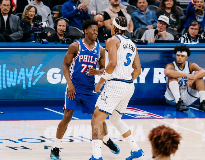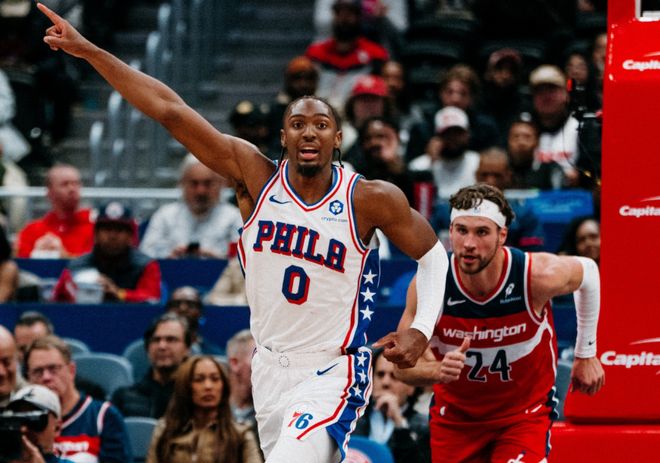 但最意外的球隊(duì),是76人,開局四連勝,東部第一!今夏76人用探花簽選擇的埃奇庫(kù)姆,場(chǎng)均22.3分5.5籃板5.5助攻,聯(lián)合馬克西場(chǎng)均37.5分3.8籃板8.3助攻,成為聯(lián)盟最犀利的二人組,雙人組合場(chǎng)均得分聯(lián)盟第一!此外,休賽期被迫簽下資質(zhì)報(bào)價(jià)的格萊姆斯,和烏布雷搭建起最強(qiáng)側(cè)翼組合,場(chǎng)均都是17.8分入賬,這四人組合,將76人拉升到場(chǎng)均得分(129.3分)聯(lián)盟第三,三分球命中率41.9%聯(lián)盟第一,場(chǎng)均命中16.3記三分球聯(lián)盟第三!還有一點(diǎn)很有趣,76人本賽季場(chǎng)均失誤只有12.3次,聯(lián)盟最佳水平!