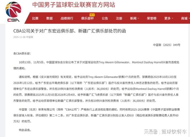 不過(guò),很顯然,他們還是低估了籃協(xié)對(duì)于該類(lèi)事件的重視以及處罰力度。近日,中國(guó)籃協(xié)終于針對(duì)吉倫沃特和哈雷爾開(kāi)出終極罰單。根據(jù)籃協(xié)開(kāi)出的罰單顯示,吉倫沃特和哈雷爾都會(huì)被禁賽三個(gè)月。這其中吉倫沃特從2025年10月13日開(kāi)始執(zhí)行,2026年1月12日結(jié)束。而哈雷爾則從2025年11月5日,到2026年2月4日結(jié)束。不過(guò),由于CBA新賽季開(kāi)賽延遲,他倆其實(shí)還是能夠趕上新賽季大部分比賽的。