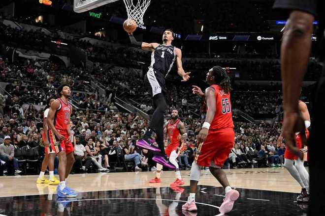 馬刺:??怂?4分3板3助、文班亞馬18分18板3助3帽、瓦塞爾16分2板、巴恩斯15分、卡斯爾14分4板14助、尚帕尼14分、凱爾登12分8板4助2斷、索漢10分3板3助2帽。