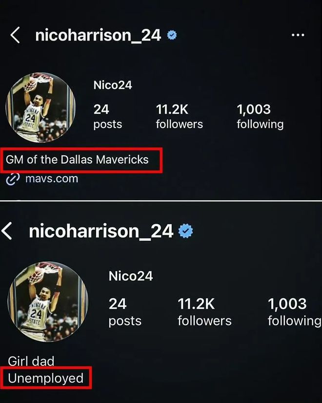 哈里森光速把社媒簡介改成了——失業(yè)中。