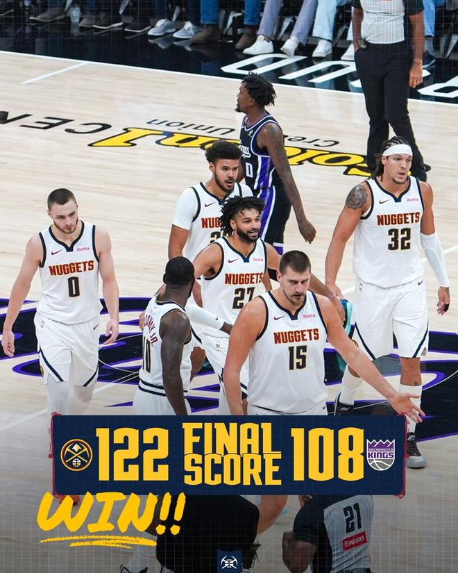 約基奇遠投不進,隨后還出現犯規(guī),尤班克斯2罰1中。掘金進攻24秒違例,尤班克斯上籃得分,約基奇命中三分球還以顏色,距離終場僅剩100秒,掘金領先10分得以鎖定大局。尤班克斯進攻犯規(guī),約基奇助攻布朗轟進三分球,尤班克斯上籃得手。布勞恩外線得分,德羅贊遠投打鐵,比賽時間走完。最終,掘金以122比108掀翻國王。