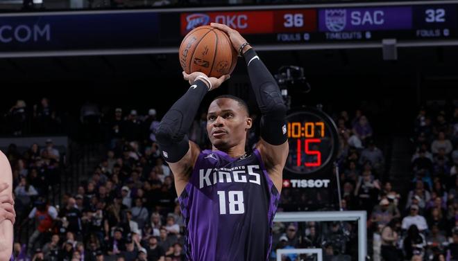 國王隊球星拉塞爾威斯布魯克,在此役拼盡全力。威少替補上場31分鐘,12投3中,三分球7投1中,罰球7中7,得到了14分8板11助攻的準三雙數據。威少在進攻端手感不佳,僅有25%的投籃命中率、遠投命中率跌至14%。