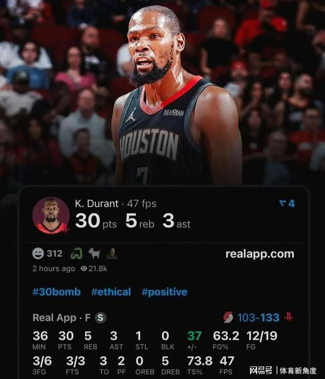 申京則穩(wěn)坐中軍帳,組織調(diào)度有條不紊,全隊上下一心,在防守端筑起銅墻鐵壁。這樣一支能為大哥分憂解隊,讓杜蘭特得以盡情釋放自己的得分才華。首節(jié)他便8投6中,砍下16分,毫不留情?;{(diào)就此奠定,火箭隊碾壓對手。一方面,休斯頓的球隊在磨合中不斷進化,愈發(fā)默契;另一方面,杜蘭特堪稱開拓者的克星,面對開拓者,他已經(jīng)連續(xù)30場得分超過20+!這是NBA長達55年的壯舉!正負值高達+37,這還有什么可說的呢,老鐵們?