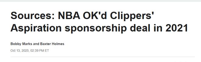 多位了解聯(lián)盟贊助審核流程的消息人士稱,審核核心圍繞贊助商的信譽及履行財務承諾的能力展開。目前尚不清楚聯(lián)盟在初步批準快船隊與Aspiration的協(xié)議后,是否對該協(xié)議進行過進一步審核。