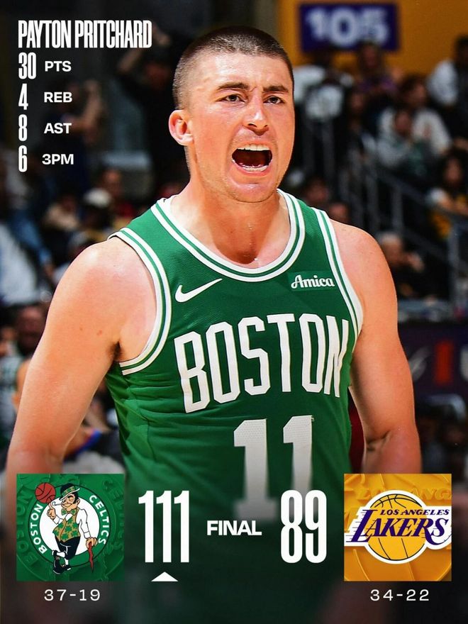 布朗32+8+7普里查德30+8 綠軍22分大勝湖人