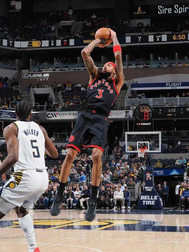 猛龍上一場(chǎng)主場(chǎng)102-115輸給76人,步行者過去3場(chǎng)連贏黃蜂、熱火與凱爾特人收獲3連勝,本賽季前兩次交鋒猛龍均戰(zhàn)勝步行者。本場(chǎng)猛龍缺少奎克利、馬穆、珀?duì)柼貭?、沃爾特與巴雷特,步行者缺少哈利伯頓、托平、馬瑟林。首節(jié)開局,猛龍率先內(nèi)外開花取得15-4領(lǐng)先,步行者連追5分,猛龍內(nèi)外開花碾壓,很快拉開32-11領(lǐng)先21分優(yōu)勢(shì),首節(jié)結(jié)束猛龍維持39-18領(lǐng)先步行者21分。首節(jié)猛龍22中16超過7成準(zhǔn)星,其中三分5中4,巴恩斯4中4得到10+2+3;步行者19中6,其中三分8中2,西亞卡姆0分。