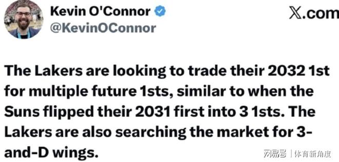 雅虎體育記者Kevin O'Connor在播客里“大揭秘”,湖人正琢磨著用他們2032年的首輪簽,去換好幾個(gè)未來的首輪簽?zāi)?,這操作跟太陽之前把2031年首輪變成三個(gè)首輪的玩法有點(diǎn)像,就像變魔術(shù)一樣。同時(shí)呢,湖人還在市場(chǎng)上像個(gè)尋寶獵人一樣找3D側(cè)翼,打算把文森特和范德比爾特打包起來,拿去跟別人做交易。