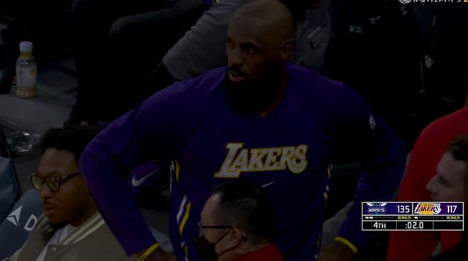 當(dāng)時湖人被黃蜂打的提前換主力投降,比賽也已經(jīng)進入到垃圾時間,還剩下兩秒的時候,詹姆斯起身看了一眼球場,最后直接返回球員通道了,他當(dāng)時連衣服都已經(jīng)穿好了,而此時黃蜂隊的球員還在挨個和湖人球員擁抱,甚至連東契奇走之前,都上去和對手擊了個掌。而詹姆斯站起來看了隊友一眼,二話不說扭頭走回球員通道,對于自己隊伍的表現(xiàn)是非常不滿意的。