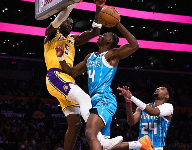 但塞恩詹姆斯上反籃,塞克斯頓反擊上籃,湖人幾個(gè)失誤,又被拉開(kāi)分差。三節(jié)打完,湖人93-104黃蜂。決戰(zhàn)第四節(jié),拉拉維亞和斯瑪特帶隊(duì)追到只差6分,但迪亞巴特輕松上籃,鮑爾又中超遠(yuǎn)三分,克尼佩爾強(qiáng)攻打板命中,湖人又被拉開(kāi)分差。中段東契奇和鮑爾對(duì)轟三分,布里奇斯彈無(wú)虛發(fā),黃蜂拉開(kāi)17分分差。湖人沒(méi)放棄,范德比爾特補(bǔ)籃+老詹上籃,鮑爾兩記三分殺死比賽!最終湖人117-135慘敗黃蜂。