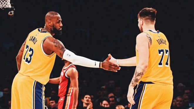 缺少東契奇,詹姆斯和里夫斯帶隊,湖人1勝1負,勝率50%,還不如勇士,排西部第9。