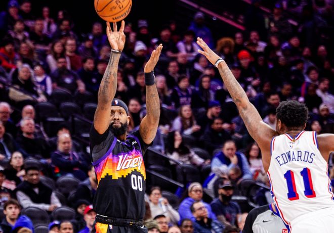這一個比賽日,正處于兩連勝的太陽,奔赴費城挑戰(zhàn)76人,本場比賽杰倫格林復(fù)出和布克一起率領(lǐng)太陽打出了流暢的整體進攻,最終在客場以116-110擊敗76人,取得了一波三連勝的同時,送給了76人交手四連敗。
