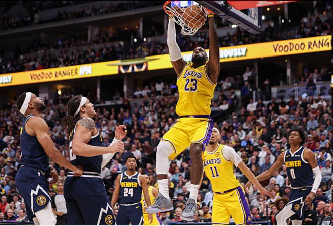 掘金一開始以37-28領(lǐng)先湖人,到了第二節(jié),湖人仍然抵擋不住掘金的進(jìn)攻,上半場,掘金以71-56領(lǐng)先對手15分。下半場,風(fēng)云突變,湖人的防守做的不錯,掘金的手感也漸漸變得冰涼,第三節(jié),湖人只讓掘金得到31分,自己得到29分,東契奇和詹姆斯輪番帶隊追分,并加強防守限制住賈馬爾·穆雷,單節(jié)29-17凈勝12分,成功追到差2分。漸漸將分差縮小到個位數(shù)。