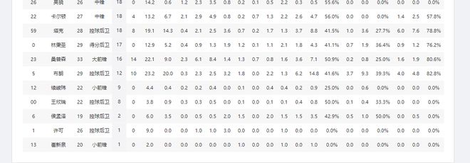 得分外援依賴(lài)度:廣東男籃59.2%>廣廈男籃54.7%>北京男籃51.4%>上海男籃50.2%