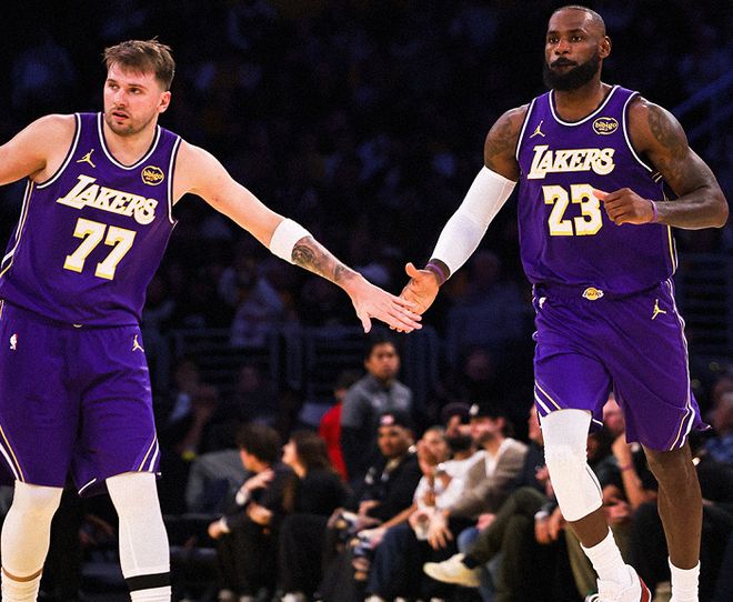 沒有里夫斯,老詹扮演著合格二當(dāng)家的角色,獨(dú)砍24分+5籃板+3助攻。尤其是上半場,老詹攻下20分,老夫聊發(fā)少年狂,成為NBA歷史首位在年滿41歲后半場轟下20+的球員。八村塁則扮演著板凳匪徒的角色,吃餅吃到撐,11中9砍下23分,高效得離譜。更關(guān)鍵的是,公牛隊(duì)與湖人隊(duì)瘋狂對轟,恰逢東契奇73分兩周年,逼出了無雙模式的盧卡!盧卡出戰(zhàn)38分鐘,25投15中(三分球14中8),罰球12中8,爆砍46分+7籃板+11助攻的豪華數(shù)據(jù)。與此同時(shí),盧卡一戰(zhàn)刷爆多項(xiàng)NBA紀(jì)錄。