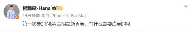大名鼎鼎的Klutch Sports體育經紀公司以及開拓者官方,均發(fā)文祝賀楊瀚森入選2026年NBA全明星新秀賽。