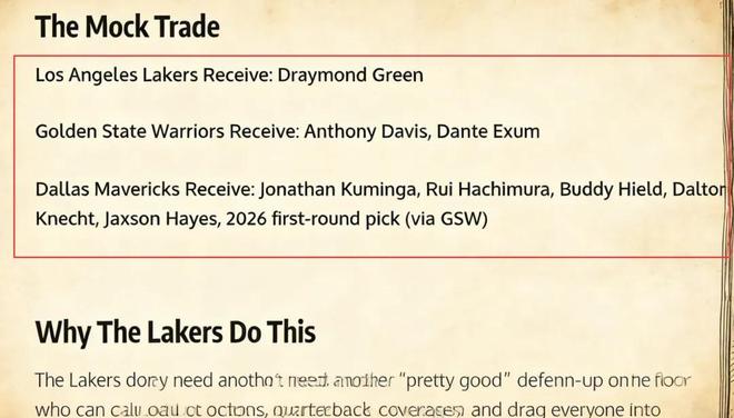 比如,美媒《Fadeaway World》便撰文提出了一套3方交易方案,引發(fā)多方關(guān)注。具體方案為——