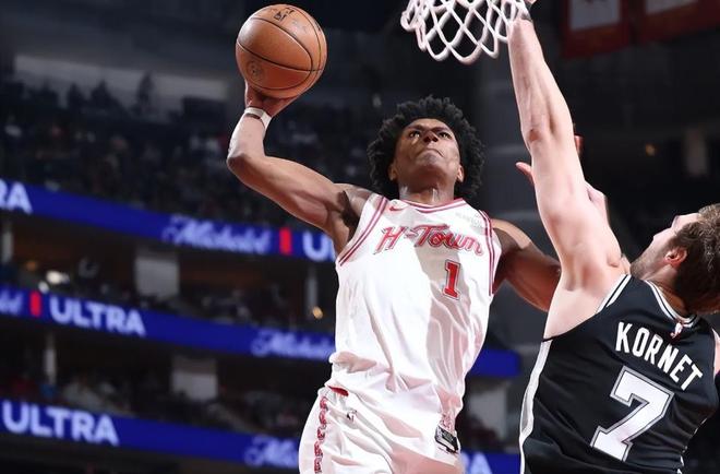 本場比賽中,火箭的先發(fā)控衛(wèi)阿門-湯普森(Amen Thompson)算是將自己的弱點(diǎn)暴露無遺。阿門全場出場35分52秒,投籃23中11,罰球3中3,得到了25分7籃板4助攻4搶斷1蓋帽的數(shù)據(jù),還有2次失誤,正負(fù)值為-15。阿門在進(jìn)攻端看起來還是展現(xiàn)出了不錯(cuò)的突破能力,他也是通過這樣的方式得到了不少的分?jǐn)?shù)。不僅如此,阿門在防守端的表現(xiàn)也是值得肯定的,他也是展現(xiàn)出了自己在這方面的特點(diǎn)。然而問題就在于,到了比賽第四節(jié),馬刺調(diào)整了對于阿門的防守布置,阿門的突破成功率下降,他在中距離投籃方面毫無準(zhǔn)星,他又沒有足夠的傳球能力和組織能力,球隊(duì)的進(jìn)攻陷入了徹底的停滯,這也是球隊(duì)最終遭遇了一場慘敗的關(guān)鍵因素。