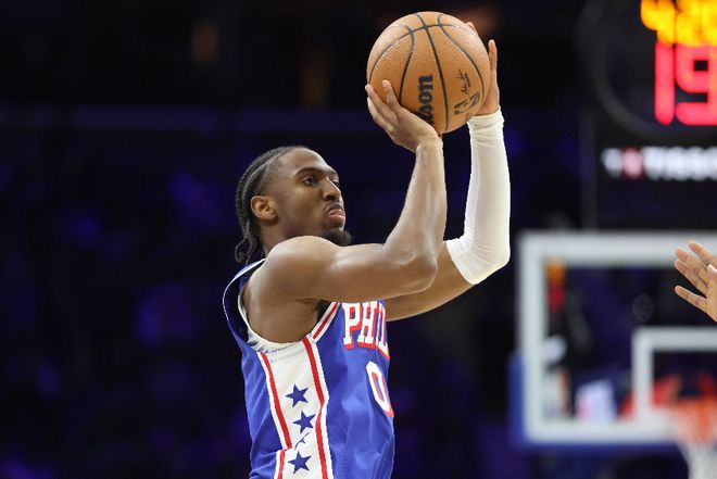 76人這邊,恩比德進(jìn)攻端相當(dāng)高效,10投7中(三分1中1),罰球4中4,拿到19分2籃板3助攻1蓋帽;馬克西能突能投,10投7中(三分7中4),罰球5中5,拿到23分4籃板6助攻1搶斷。