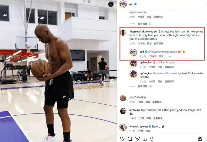 保羅曬出訓(xùn)練照,球迷評論區(qū)貼臉開大