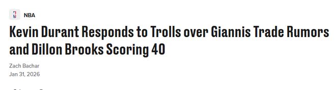 北京時間2月1日,鍵盤俠KD又上線了!火箭隊球星杜蘭特,對于自己的名字卷入字母哥與密爾沃基雄鹿隊的交易流言一事,頗感意外。此外,他還回應(yīng)了狄龍近日40分爆發(fā)。
