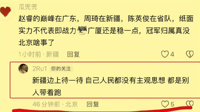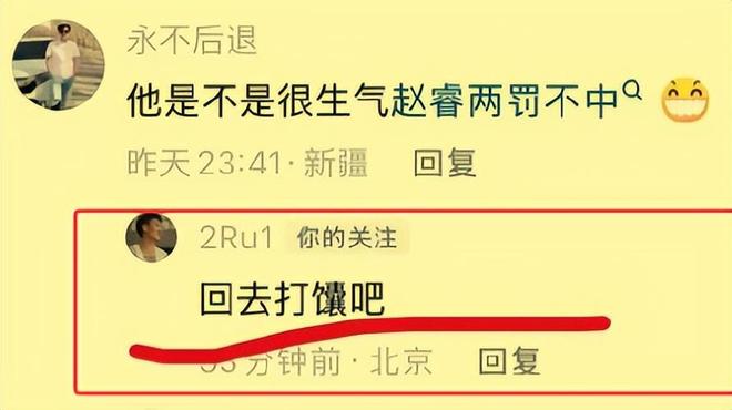 而在對陣青島隊的這場比賽投籃10中4手感冷涼,并且在關(guān)鍵時刻兩罰盡失的北京首鋼隊后場絕對主力趙睿,輸?shù)舯荣惡蟮男那楸緛響?yīng)該就不太好,所以當(dāng)他看到前東家新疆隊的球迷留言評論他現(xiàn)在所效力的北京首鋼隊本賽季的爭冠前景以及他的個人表現(xiàn)后火氣一下子就上來了,立馬怒懟了回去。