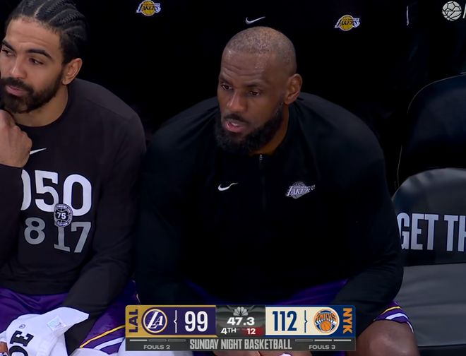 當(dāng)時可以看到,人家尼克斯全隊(duì)5個人在詹姆斯去上籃的時候,都已經(jīng)不防守了,就看著他刷兩分,因?yàn)橹肋@個兩分是改變不了局面的兩分,你去刷這個兩分沒有意義,這就是無非就是得分和數(shù)據(jù)我要帶走,勝利我不要的意思了。