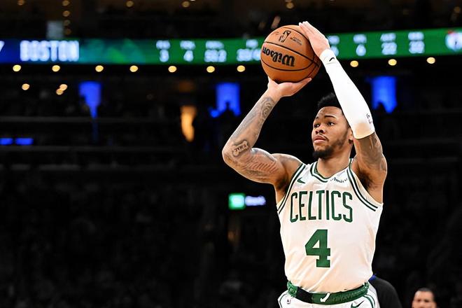 本場(chǎng)比賽中,凱爾特人的替補(bǔ)后場(chǎng)大將安芬尼-西蒙斯(Anfernee Simons)的表現(xiàn)算得上是令人刮目相看。西蒙斯全場(chǎng)出場(chǎng)24分46秒,投籃18中10,三分線外10中6,罰球1中1,得到了27分3籃板1助攻的數(shù)據(jù),還有2次犯規(guī),正負(fù)值為+10。西蒙斯在進(jìn)攻端大殺四方,他找到了自己的手感,他不斷通過外線投籃制造威脅,他的三分命中率高到離譜,而且他也展現(xiàn)出了一定的突破能力。作為一名替補(bǔ)球員,西蒙斯的出場(chǎng)時(shí)間其實(shí)并不多,但是他還是抓住了機(jī)會(huì)將自己在進(jìn)攻端的特點(diǎn)發(fā)揮了出來。西蒙斯在其他方面的表現(xiàn)比較一般,但是他也算是很好地扮演了球隊(duì)超級(jí)第六人的角色,他的一系列不俗表現(xiàn)也為球隊(duì)的勝利做出了不小的貢獻(xiàn)。