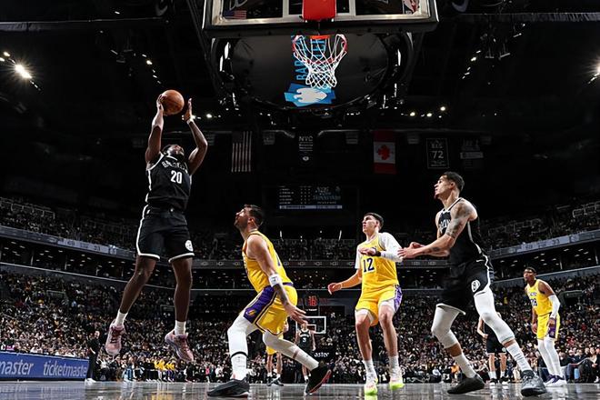 本場(chǎng)比賽中,籃網(wǎng)雖然輸?shù)袅吮荣?,但是球?duì)的替補(bǔ)中鋒戴隆-夏普(Day'Ron Sharpe)的表現(xiàn)其實(shí)是相當(dāng)不錯(cuò)的。夏普全場(chǎng)出場(chǎng)25分43秒,投籃12中9,罰球1中1,得到了19分14籃板5助攻3搶斷的兩雙數(shù)據(jù),其中還包括了10個(gè)前場(chǎng)籃板,還有1次失誤和4次犯規(guī),正負(fù)值更是達(dá)到了全場(chǎng)最高的+14。夏普在進(jìn)攻端不斷搶到前場(chǎng)籃板,拿到了大量二次進(jìn)攻的機(jī)會(huì),而且他在對(duì)手內(nèi)線的殺傷力也是相當(dāng)突出的,得到了大量的分?jǐn)?shù),甚至可以說是打爆了湖人內(nèi)線。除此之外,夏普也展現(xiàn)出了一定的傳球能力和策應(yīng)能力。夏普在防守端的表現(xiàn)同樣是可圈可點(diǎn)的水平,同樣起到了相當(dāng)不錯(cuò)的效果。不夸張地說,夏普就是籃網(wǎng)本場(chǎng)慘敗中表現(xiàn)最好的球員之一了,沒有他,籃網(wǎng)只會(huì)輸?shù)酶鼞K。