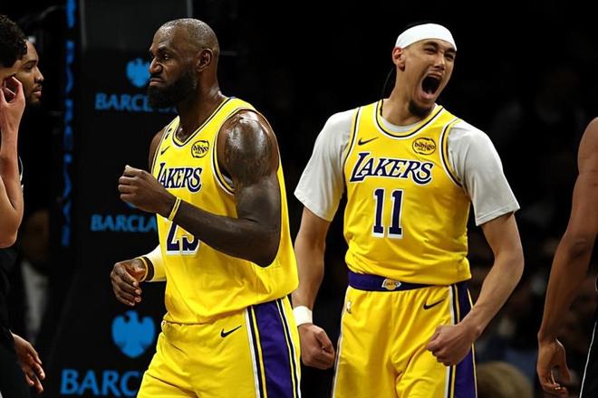 在此前的一場NBA常規(guī)賽中,洛杉磯湖人以125比109輕取了主場作戰(zhàn)的布魯克林籃網(wǎng)。本場比賽后,在最近3場比賽中拿下了兩場勝利的湖人的戰(zhàn)績提升到了30勝19負(fù),排名也是超過了明尼蘇達(dá)森林狼和菲尼克斯太陽并且攀升到了西部第5位,與身后的森林狼的勝場差為0場,與太陽的勝場差為0.5場;而遭遇了兩連敗的籃網(wǎng)的戰(zhàn)績則是下滑到了13勝36負(fù),繼續(xù)排名東部第13位,與身后的華盛頓奇才的勝場差為0場。