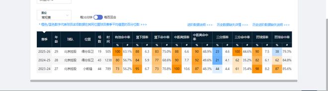 里勒擅長中遠距離投射、持球攻筐,得分手段豐富且穩(wěn)定。第一階段過后,他每百回合的有效命中率,三分命中率,高居聯(lián)盟同位置第一百回合中距離命中率則能成超過90%的同位置球員。