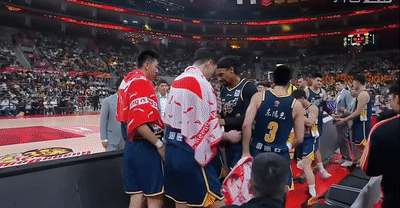 比賽第二節(jié)初段,薩林杰在一次中投不進(jìn)后的回防過程中,疑似出現(xiàn)了傷情,薩林杰蹲在底線附近,不斷向場邊教練組比劃要換人的手勢。
