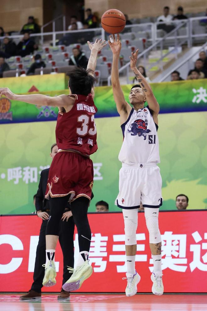 其中,他全場比賽命中的第二粒進球最為典型。當時謝智杰在三分線外右側(cè)45度位置持球,陳林堅從左側(cè)45度啟動,連續(xù)借助陶漢林在弧頂?shù)膬纱窝谧o擺脫防守,接球向前一步,在罰球線位置急停跳投穩(wěn)穩(wěn)命中。這樣的進攻場景本賽季在陳林堅的身上是并不多見的。聯(lián)賽中,他經(jīng)常是埋伏在底線附近等待接球,而山東隊主要的突破點珀塞爾和鮑威爾的分球能力并不出色,很難為底角的射手創(chuàng)造機會。而且,陳林堅往往會面對對手的貼身盯防,空位出手更是難上加難。