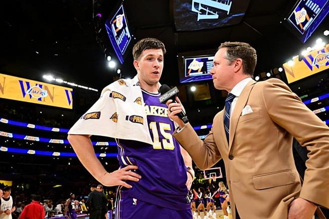 本場(chǎng)比賽中,剛剛傷愈復(fù)出的湖人后場(chǎng)大將奧斯汀-里夫斯(Austin Reaves)打出了一場(chǎng)現(xiàn)象級(jí)的表現(xiàn)。里夫斯全場(chǎng)出場(chǎng)25分03秒,投籃17中12,三分線外8中5,罰球7中6,得到了全場(chǎng)最高分35分外加6籃板2助攻的數(shù)據(jù),還有5次失誤,正負(fù)值為+5,在盧卡-東契奇(Luka Doncic)提前傷退的情況下,里夫斯扛起了球隊(duì)的進(jìn)攻大旗,他不斷通過自己的個(gè)人能力完成得分任務(wù),他在突破和投籃方面的表現(xiàn)都是非常出色的,他也是證明了自己有著超強(qiáng)的得分能力,他也是已經(jīng)找到了自己在受傷前的水準(zhǔn)。事實(shí)上,里夫斯的全部得分都來(lái)自于比賽后三節(jié),下半場(chǎng)他總共拿到了21分,第四節(jié)更是單節(jié)13分。要不是有里夫斯長(zhǎng)時(shí)間的不斷得分,湖人基本上很難有機(jī)會(huì)扭轉(zhuǎn)勢(shì)頭并且取得勝利。