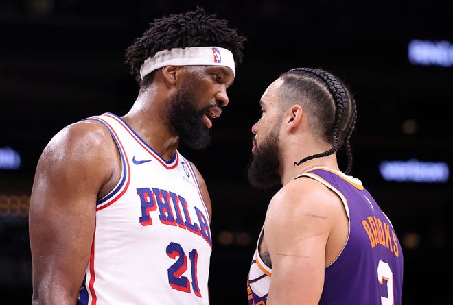 太陽主場(chǎng)迎戰(zhàn)76人,太陽少了阿倫,76人少了喬治,76人一度領(lǐng)先19分,太陽縮小了分差但無力回天,最終76人109-103擊敗太陽。馬克西21中8(三分10中3)得到29分9板6助1斷,恩比德19中9(三分7中4)得到33分9板3助,太陽方面狄龍23中11得到28分2板2助,布克12中5得到21分2板9助。
