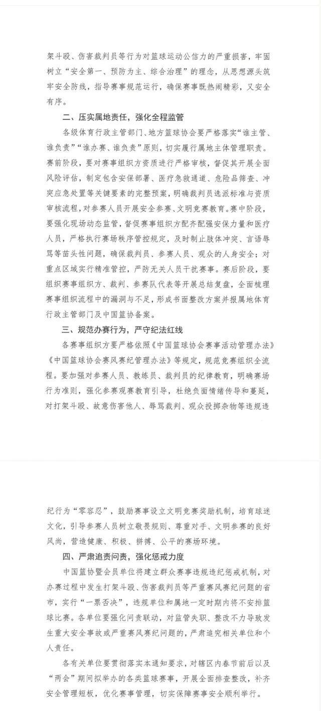 中國(guó)籃球協(xié)會(huì)2月7日發(fā)布關(guān)于進(jìn)一步加強(qiáng)群眾性賽事安全監(jiān)管工作的通知。