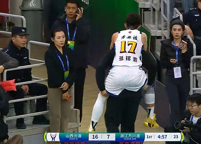 然而,雙方的比賽剛開始不久,卻出現(xiàn)了一個意外情況,廣廈隊后場主力球員孫銘徽,意外受到了重傷,被隊友背下場,提前結(jié)束了本場比賽。