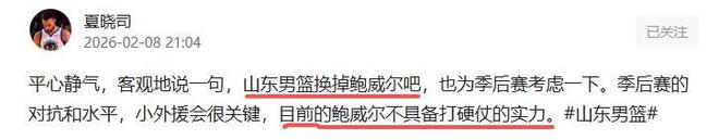可以說鮑威爾比國內(nèi)球員的表現(xiàn)還要差,打完半場一分不得,下半場邱彪只讓他打了3分多鐘,運動戰(zhàn)一分不得,靠罰球撿到了2分。全場打了9分17秒,6投0中,運動戰(zhàn)得0分,這樣的外援相當不存在,簽他也是多余的。由于個子矮,對抗差,防守端問題也大,成為對手的突破口。看到鮑威爾的表現(xiàn),山東球迷和媒體人也是非常生氣。山東媒體人夏曉司直接了當?shù)谋硎荆仨殦Q掉鮑威爾,“平心靜氣,客觀地說一句,山東男籃換掉鮑威爾吧,也為季后賽考慮一下。季后賽的對抗和水平,小外援會很關(guān)鍵,目前的鮑威爾不具備打硬仗的實力”。