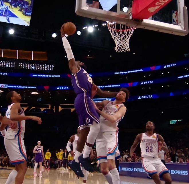 次節(jié)開場以賽亞-喬再度命中三分,他面對里夫斯突破都命中,短短14分鐘拿到16分幫助雷霆拉開到兩位數(shù)的差距被換下。湖人的第二核心里夫斯依舊有登場限制,加之詹姆斯連續(xù)出現(xiàn)了低級失誤,雷迪克用一套小陣容繼續(xù)丟分,海斯登場后湖人的三分回暖縮小到6分打停雷霆。詹姆斯突破暴扣,半場詹姆斯8分3助攻,里夫斯12分6助攻。