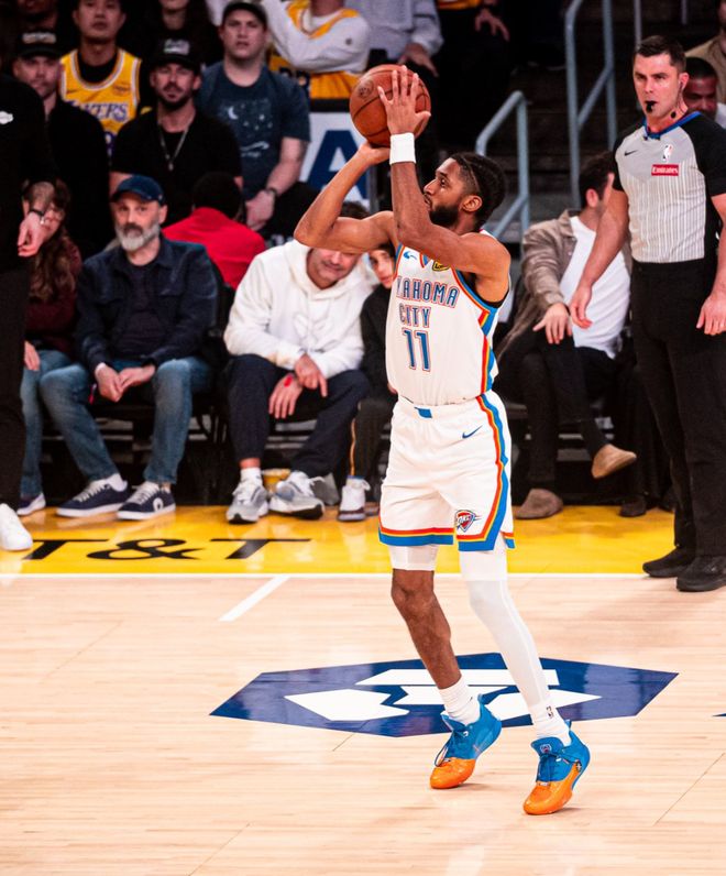 湖人神醫(yī)隊再度治好了雷霆的第二巨頭杰威,此役杰威輪休10場比賽后復出,開場兩隊是瘋狂的拼進攻,雷霆的以賽亞-喬7分鐘命中三個三分球,卡魯索也面對海斯中投命中,面對肯納德突破命中,雷霆的第二陣容是吊打湖人,湖人第二陣容只有里夫斯可以支撐一下,首節(jié)湖人落后。