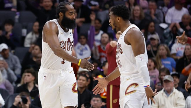 這是哈登加盟騎士的第二場比賽,米切爾和他兩人合砍了54分11籃板17助攻,具體來說: