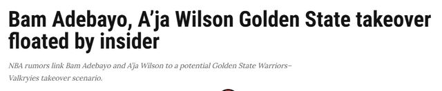 “消息源稱,四屆WNBA的MVP阿賈-威爾遜,將是拉科布和女武神的重點自由球員目標?!蔽鞲駹枌懙?,“為什么這和勇士男籃有關(guān)?因為威爾遜和阿德巴約關(guān)系密切已久。這兩人分別成為勇士男女籃的門面球星,絕對是值得關(guān)注的劇情。”