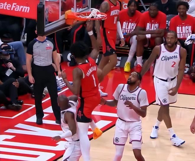 次節(jié)回來,謝潑德界外飛身救球,芬尼-史密斯釘板大帽米勒后再助攻阿門反擊完成暴扣。鄧恩搶斷一條龍過掉防守扣空籃,意外被籃筐帽下,鎖定今日五大囧,隨后又接連完成兩次搶斷,但最終都沒有轉(zhuǎn)化為得分,兩邊打得確實(shí)都辣眼睛。謝潑德切球被吹犯規(guī),火箭挑戰(zhàn)成功取消犯規(guī)還拿到球權(quán),這一波賺大了。大洛和小瓊斯連中三分,快船反超比分,杜蘭特和伊森立馬兩記三分回應(yīng),大洛極限救球,快船反擊倫納德底角再中三分,快船反超4分。阿門強(qiáng)突造殺傷后再中三分,半場(chǎng)戰(zhàn)罷,火箭52-51領(lǐng)先快船。