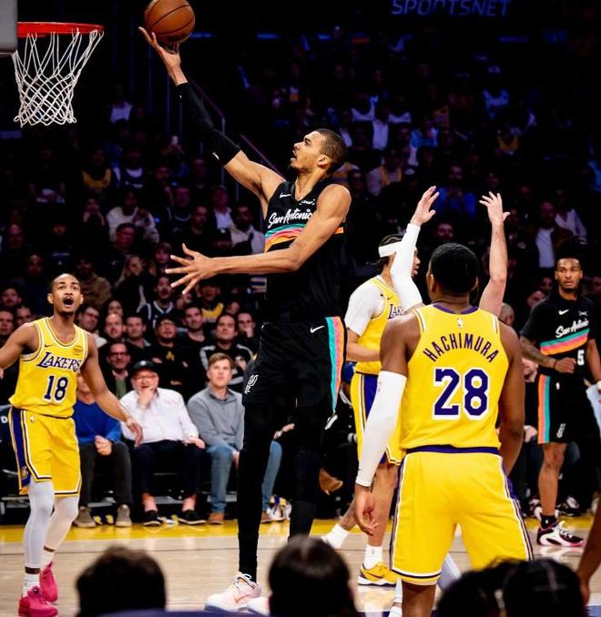 比賽開打之后,文班亞馬就開啟了暴走模式,第一節(jié)在只打了8分鐘的情況下,就靠著9中8的效率狂砍25分,不僅刷新了自己生涯單節(jié)得分的紀(jì)錄,也創(chuàng)造了馬刺隊(duì)史單節(jié)得分的新高,而湖人靠著多點(diǎn)開花的表現(xiàn),全隊(duì)單節(jié)砍下30分,艱難贏了文班亞馬5分。
