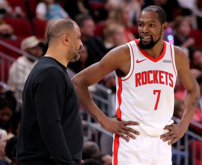 當(dāng)然這場(chǎng)申京和杜蘭特的失誤非常多,烏度卡則強(qiáng)調(diào):無(wú)論是大個(gè)子還是小個(gè)子突破、背身單打,對(duì)方都會(huì)過(guò)來(lái)包夾。然后你一轉(zhuǎn)身就可能丟,要知道包夾從哪里來(lái)。當(dāng)然這個(gè)問(wèn)題目前火箭無(wú)法解決,畢竟沒(méi)有一個(gè)合格的一號(hào)位,這會(huì)造成杜蘭特和申京必須要多承擔(dān)持球的任務(wù),他們出現(xiàn)失誤也正常。如果他們不持球,完全讓阿門、謝潑德的話,球隊(duì)的局面會(huì)更加糟糕。
