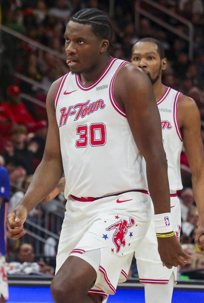 火箭隊(duì)另外的4位首發(fā)分別是伊森、杜蘭特、小史密斯和申京。除了伊森10投2中表現(xiàn)不佳之外,其余的三位球員全部得分上雙:杜蘭特得到26分和6個(gè)籃板、3次助攻;申京拿到22分、9個(gè)籃板和5次助攻,表現(xiàn)全面;小史密斯也砍下了13分和10個(gè)籃板的兩雙數(shù)據(jù),他的正負(fù)值也是全隊(duì)最高。