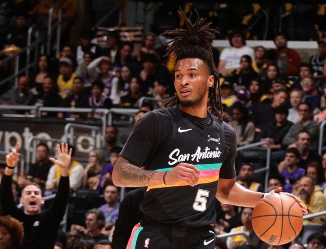 馬刺的2025年榜眼秀迪倫·哈珀在替補(bǔ)席持續(xù)提供穩(wěn)健的表現(xiàn)。上一場對陣獨(dú)行俠,他8投5中,三分球1中1,得到11分4籃板5助攻。這一戰(zhàn)擊敗湖人,他8投6中,罰球3次全進(jìn),得到15分3籃板6助攻1搶斷。