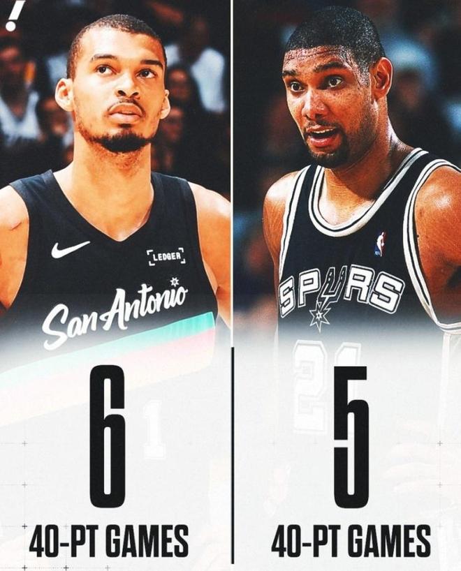 這也是文班生涯第二次在30分鐘內(nèi)砍下40+,追平哈登、恩比德、杰倫布朗并列歷史第三,僅次于克萊4次與庫里5次。
