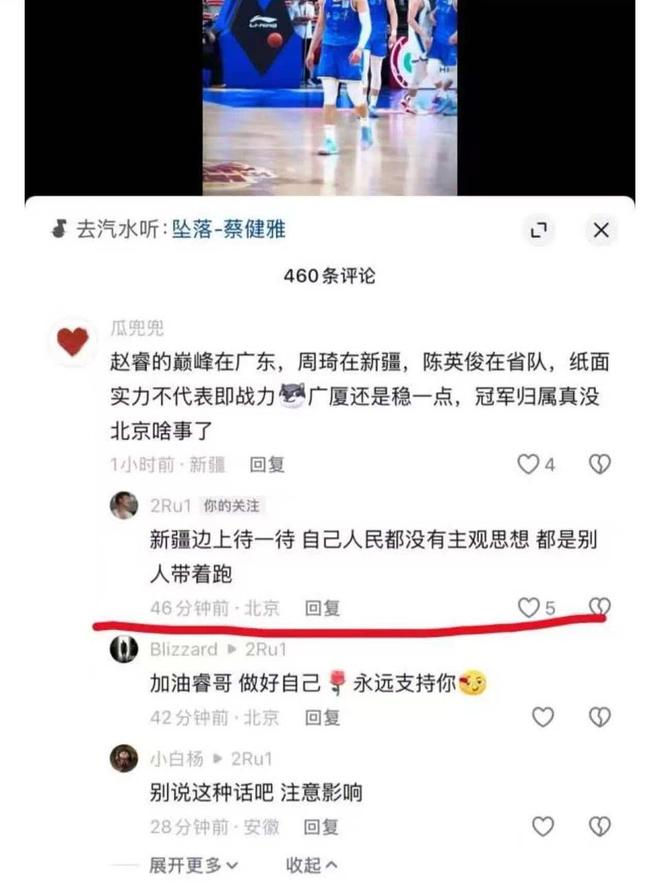 事件的導火索始于2月1日CBA常規(guī)賽第二十二輪,北京北汽隊對陣青島隊的比賽,該場比賽中,趙睿兩罰不中,球隊最終失利。賽后情緒低落的他在社交媒體上與網(wǎng)友互動時,面對新疆球迷的評論徹底“破防”。當有新疆球迷對北京隊的爭冠前景提出質(zhì)疑時,趙睿直接回懟:“新疆邊上待一待,自己人民都沒有主觀思想都是別人帶著跑?!?/p>