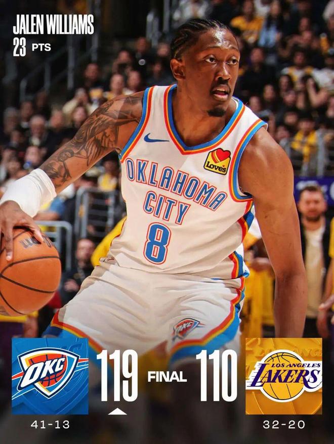 網(wǎng)友@老詹帶刀侍衛(wèi):在同樣缺少當(dāng)家球星的情況下,關(guān)鍵時刻雷霆有杰倫威能站出來,而湖人這邊就差一點了